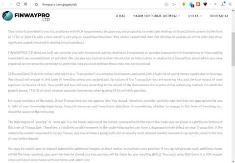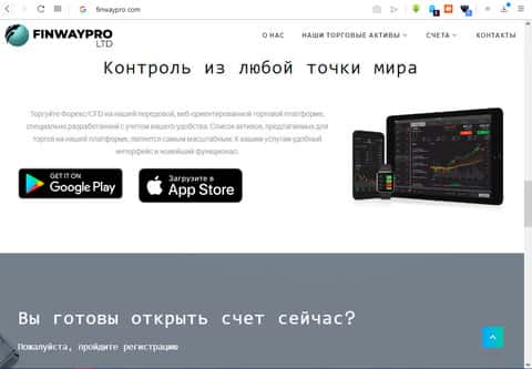 - Обзор на главную страницу сайта интернет-аферистов FinWayPro