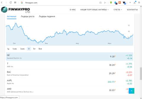 - График курсов валют, ценных бумаг и акций на сайте Фин Вэй Про