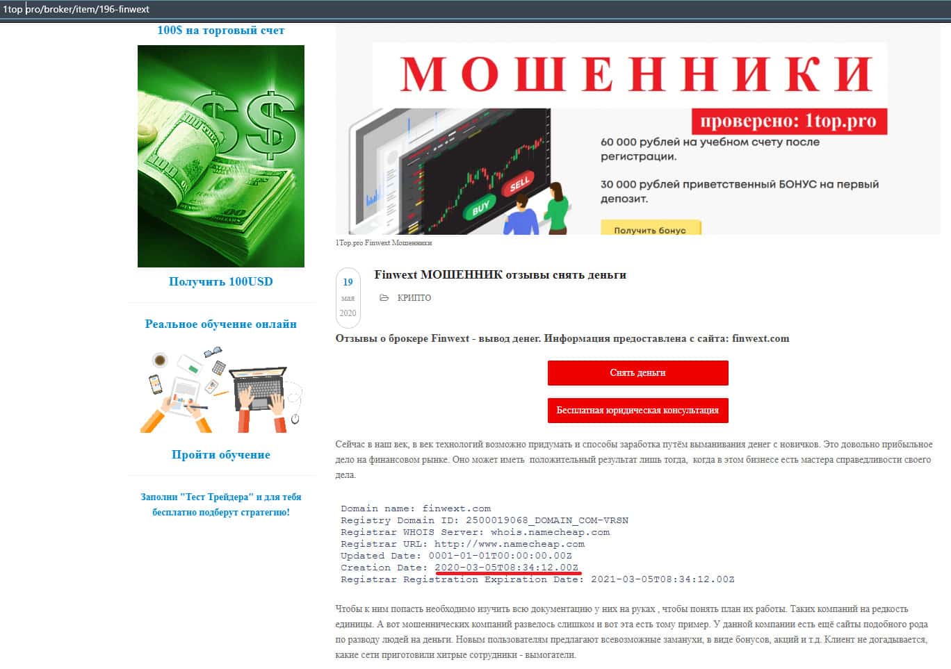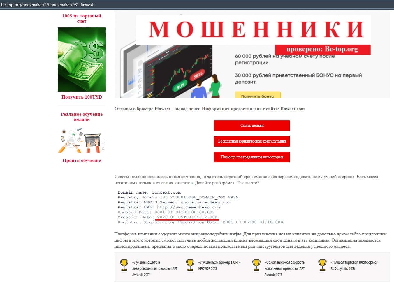 - Возраст домена аферистов finwext com