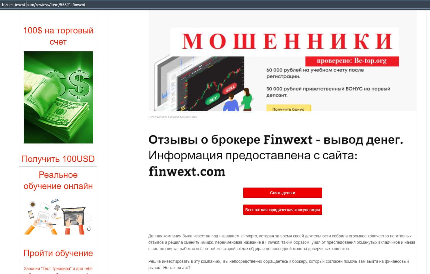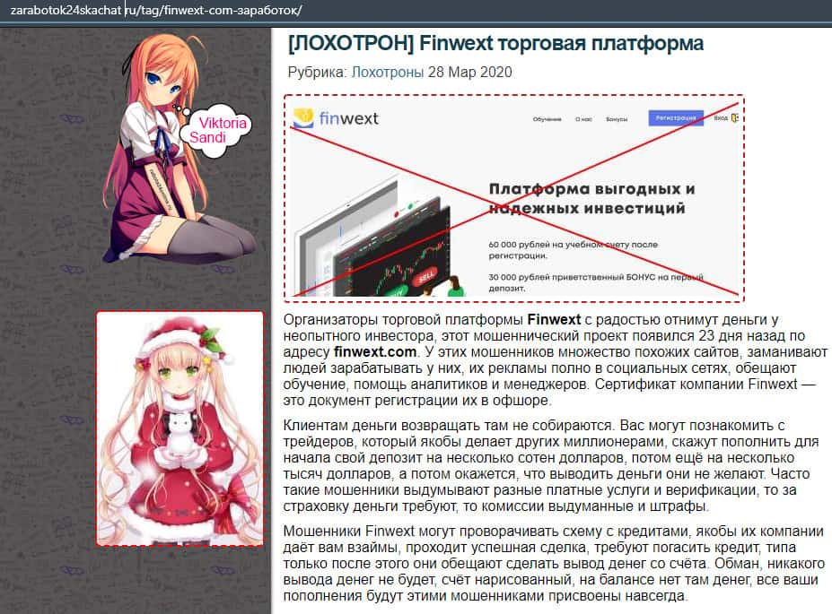 Еще одна подобная статья, была найдена на другом ресурсе, где рассказывают, что мошенники Фин Векст обворовали уже много людей и продолжают это делать.