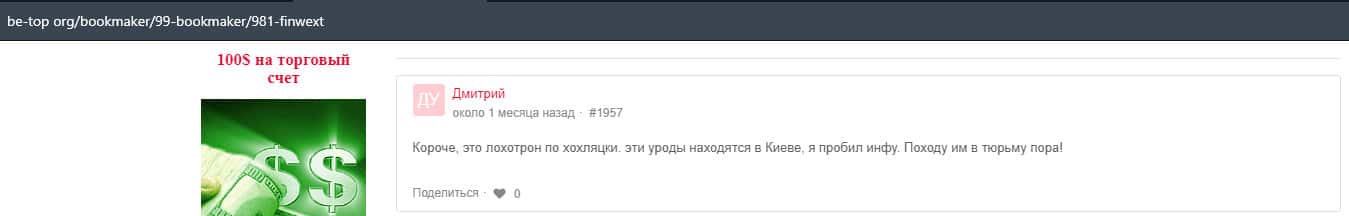 Отзывы о шулерской конторе Фин Векст
