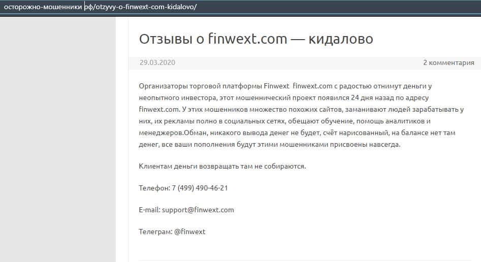 Разоблачительные отзывы о лохотроне FinWext
