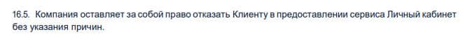 Также в любой момент, контора FinWext имеет право, отказать клиенту в предоставлении доступа к Личному кабинету, а соответственно прекращается доступ к деньгам.