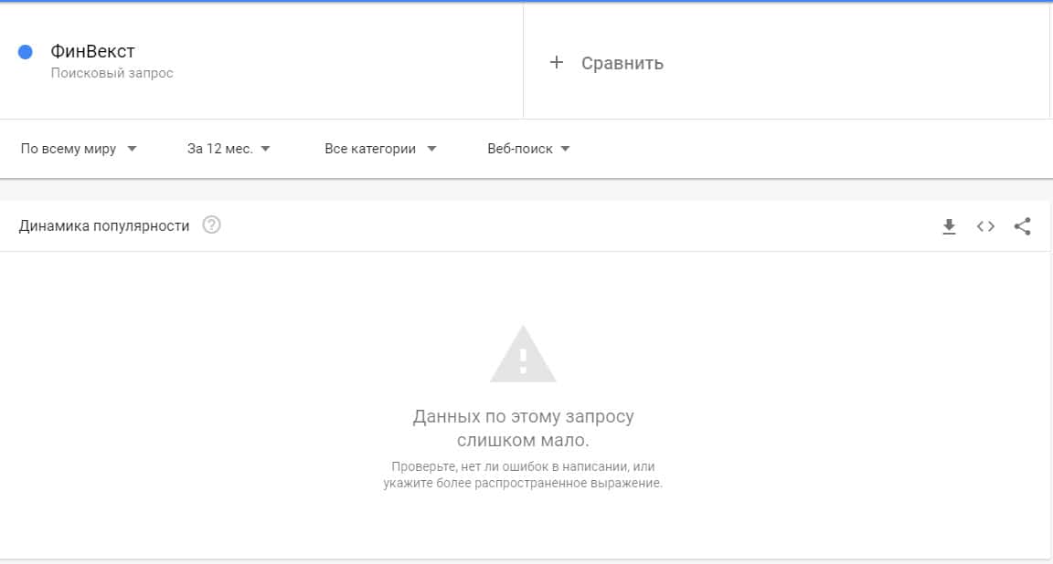 В поисковой системе Гугл, мошенники под брендом "Фин Векст" непопулярны вообще и набрали 0 запросов за месяц.