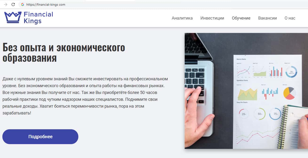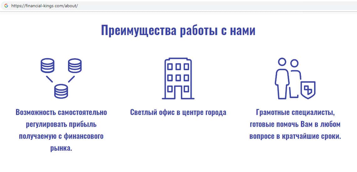 Обзор официального сайта мошеннической организации Financial Kings