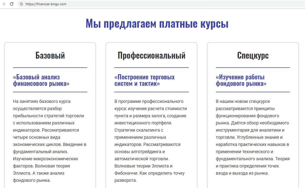 - Скам-контора Financial Kings врет о возможности получения образования на их мошенническом сайте