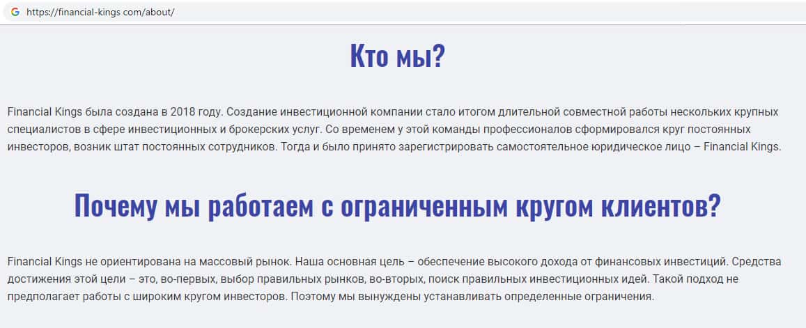 - Обзор официального сайта мошеннической организации Financial Kings