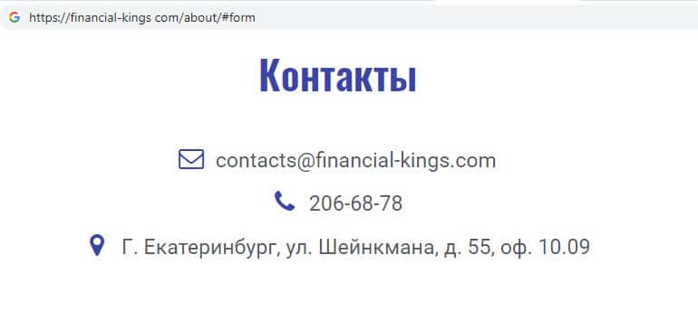 Контактная информация жульнической организации Финанциал Кингс