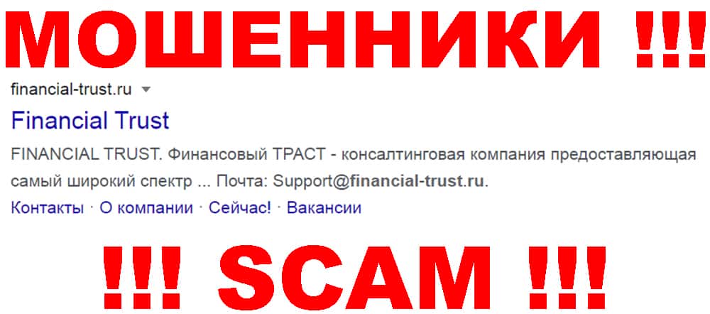 Файненшл Траст - очередные мошенники сети интернет, которые занимаются наглым разводом наивных пользователей сети интернет под довольно предлогом торговли форекс, в ходе которой жулики Financial-Trust Ru оперативно кидают на деньги клиентуру. В связи с этим иметь дело и сотрудничать с аферистами Файненшл Траст определенно не рекомендуем !!!