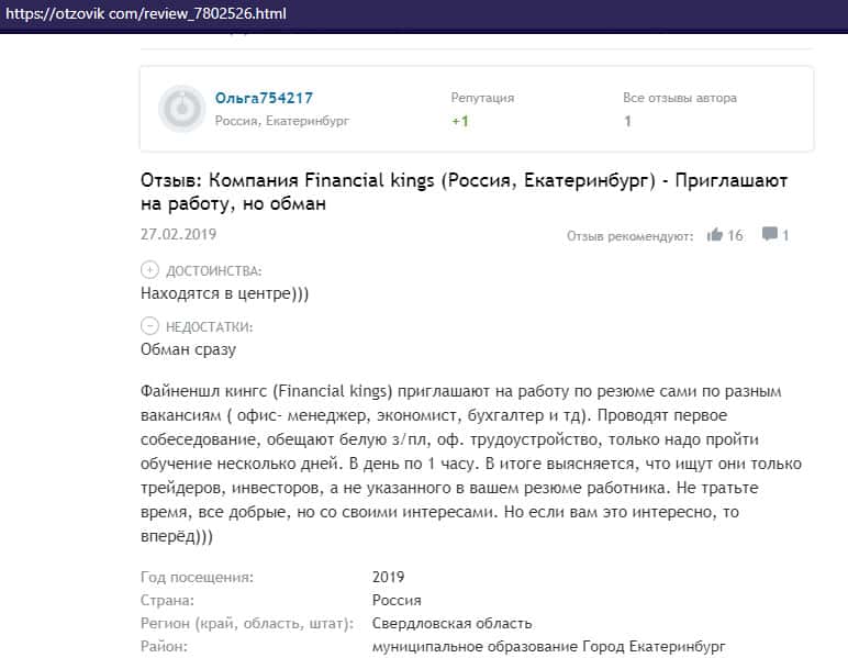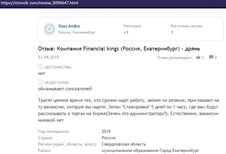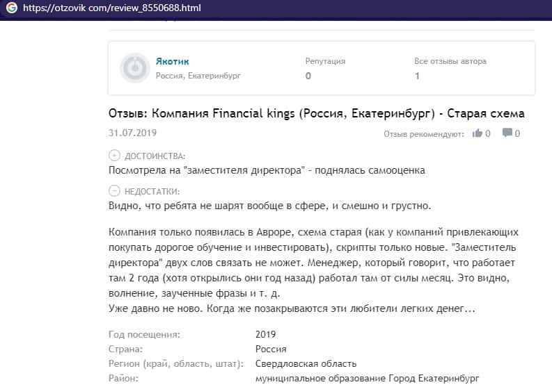 Негативный отзыв об аферистах Файненшл Траст с веб-сайта vsyapravda net