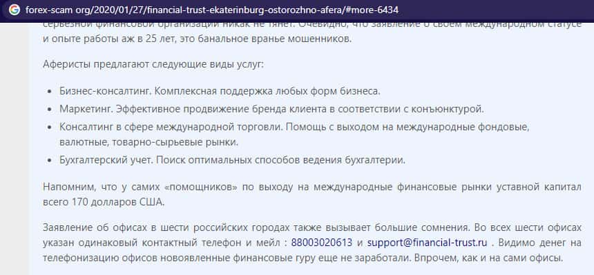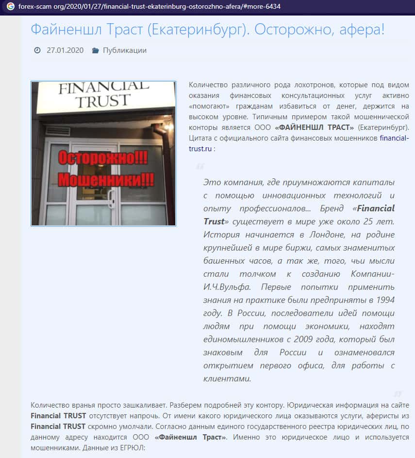 Статья о лохотроне Файненшл Траст с веб-сайта forex-scam org