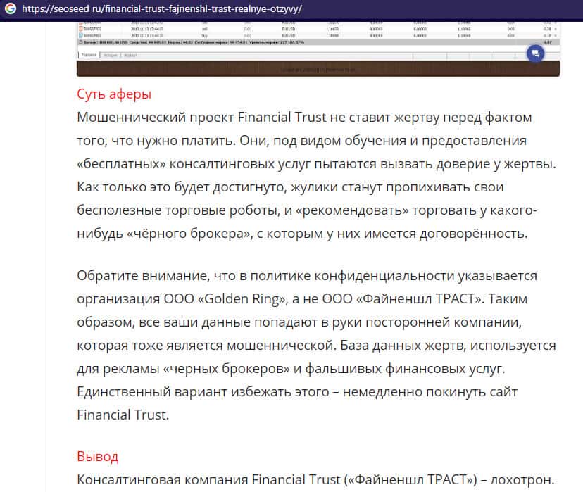 Статья о жуликах Файненшл Траст с веб-площадки seoseed ru