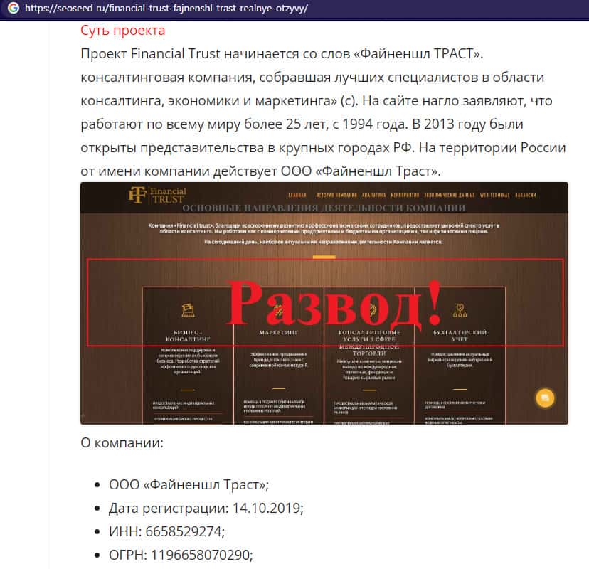 - Статья о жуликах Файненшл Траст с веб-площадки seoseed ru