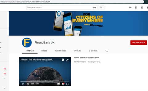 Для размещения различных рекламных видеороликов аферисты Финеско обзавелись страницей в социальной сети YouTube, где у лохотрона Fineco скрыто реальное количество подписчиков, однако даже по просмотрам можно увидеть низкую популярность жулья Финеско. На изображении, расположенном ниже, вы можете увидеть страницу аферистов Fineco в Ютубе.