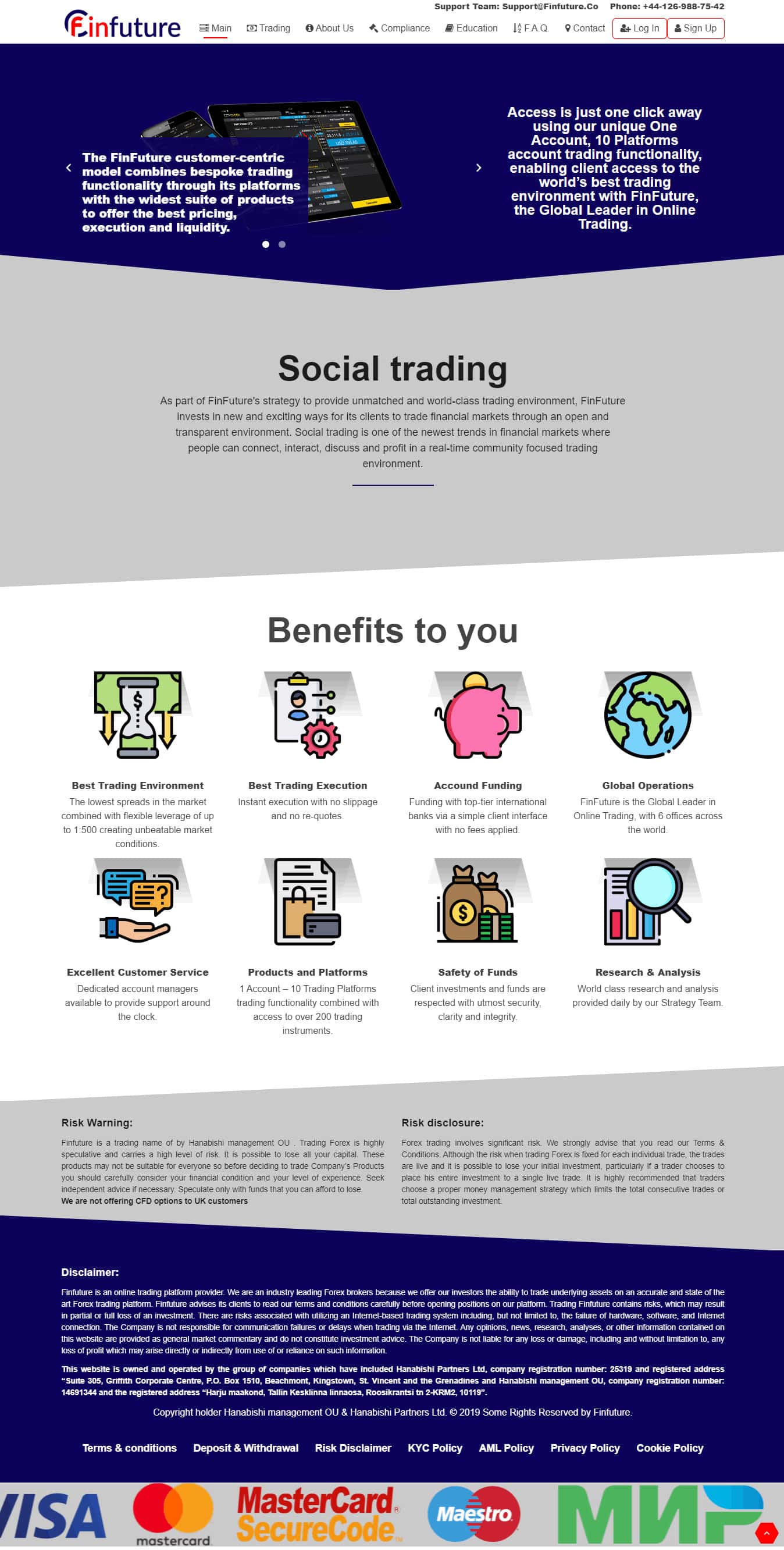 Аферисты Фин Фьюче используют деньги своих клиентов в качестве средств обогащения и соответственно контора должна постоянно находить новых жертв и поддерживать связь с уже существующими клиентами. Для этого они решили выставить публично номер телефона и электронную почту, которые в последующем не будут отвечать. Контакты: