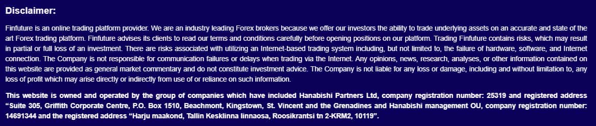 Шулерская контора FinFuture решила не вскрывать свои мошеннические лица ради своей же безопасности. Афера рассчитана на то, чтобы руководить всем процессом онлайн и, в случае чего, просто закрыть сайт, вывести деньги в оффшор и скрыться в неизвестности как от клиентов, так и от правоохранительных органов. Всем заправляет некая Hanabishi Partners LTD.