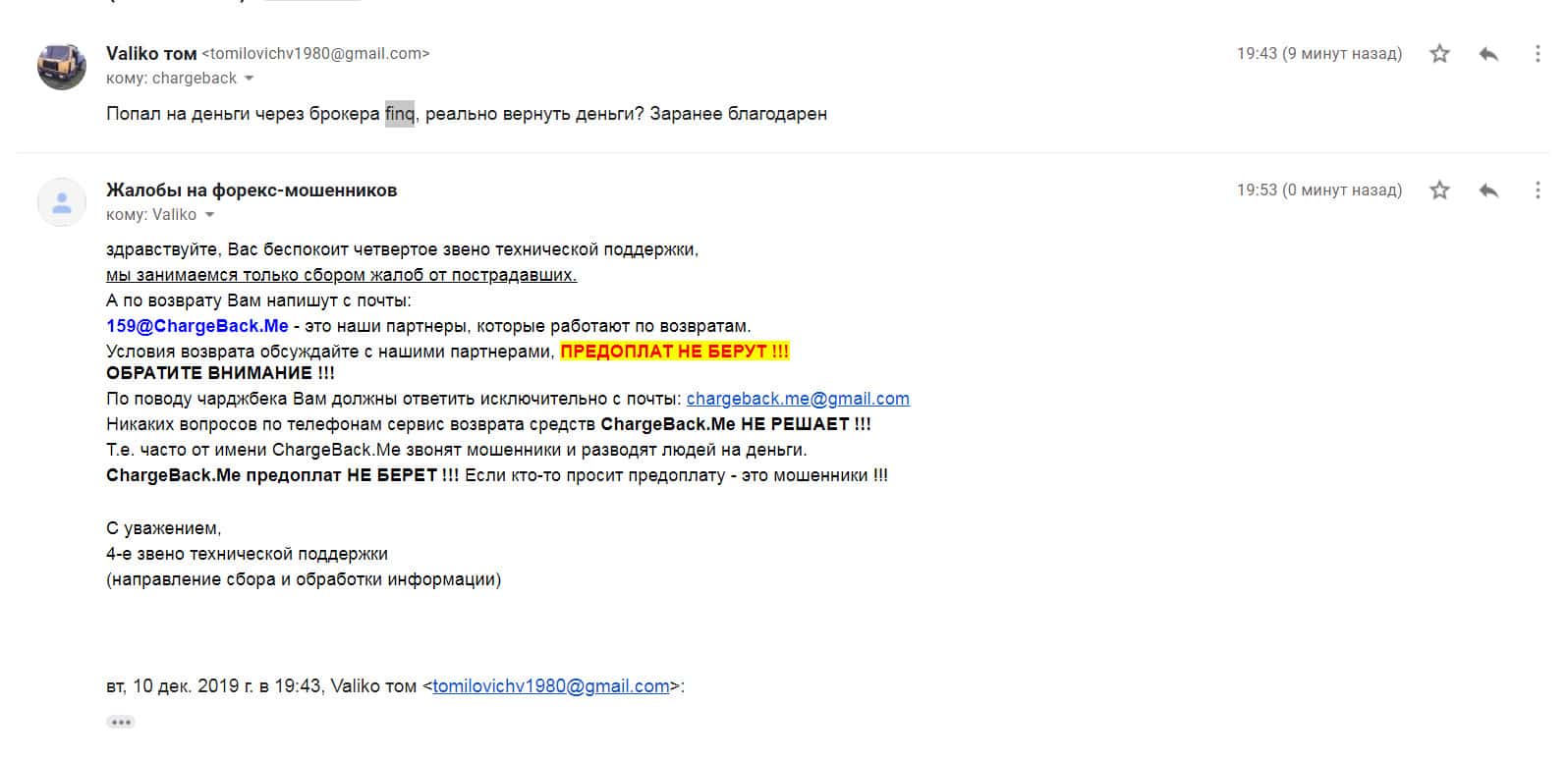 Жалоба на мошенников в лице конторы Finq