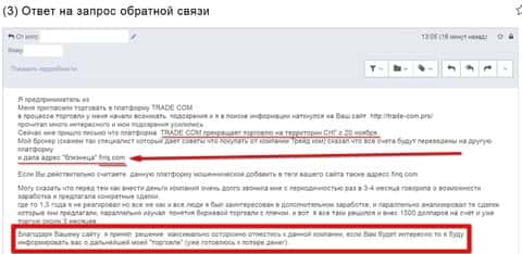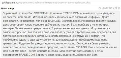 Вот что пишут реальные пользователи о предшественнике FINQ компании Трейд Ком.