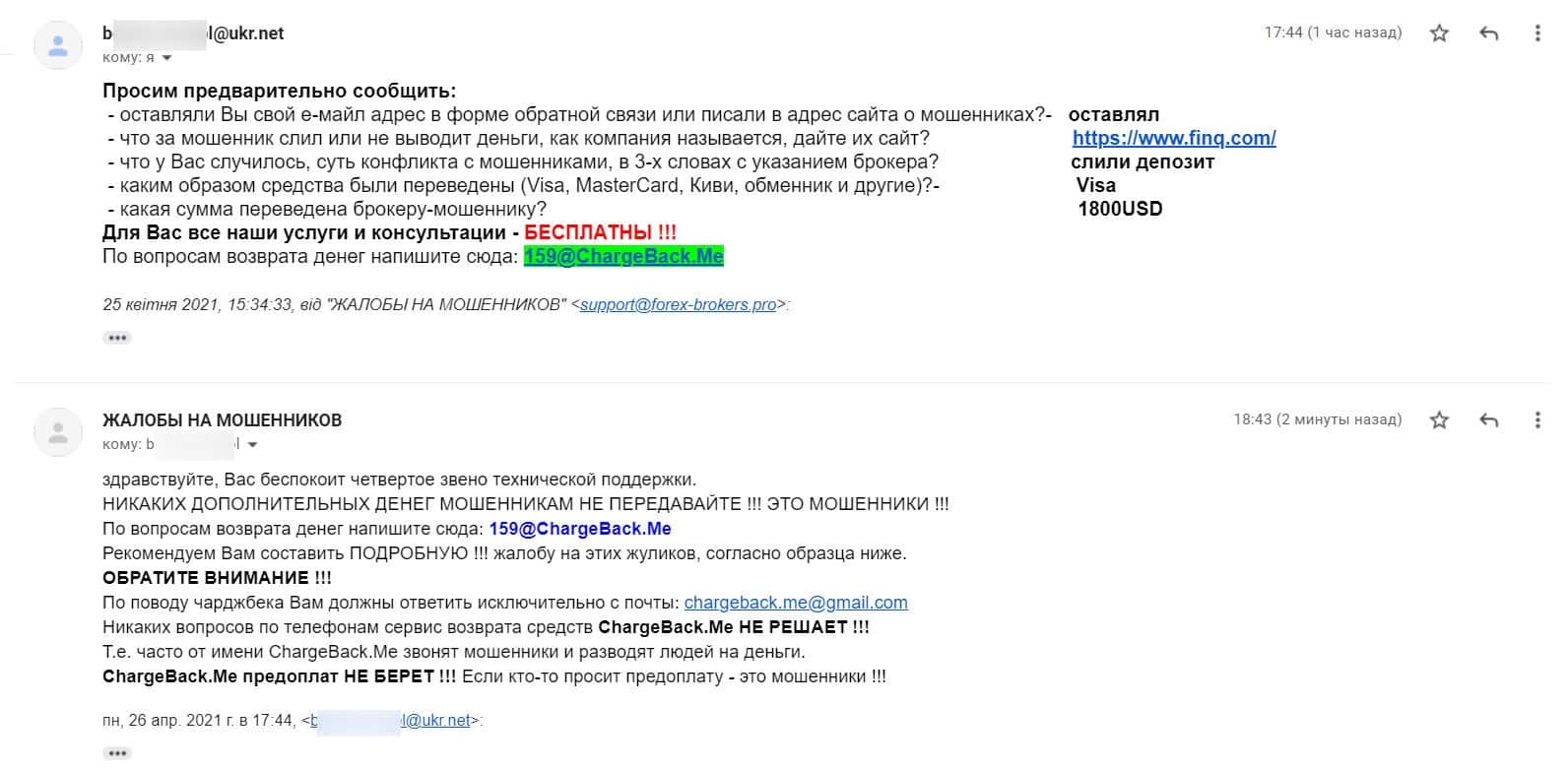 - Мошенники FINQ слили со счета клиента 1800 долларов США