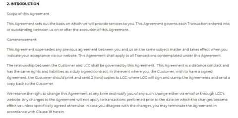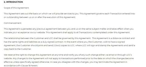 Раздел 2 клиентского соглашения между компанией ФИН Кью и ее клиентами представлен на далее идущей публикации.