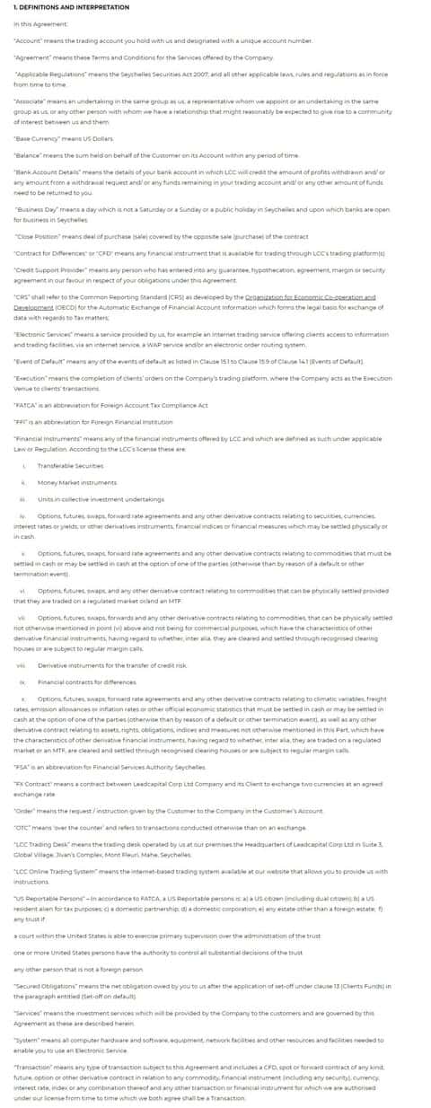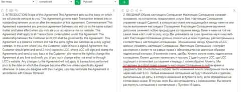 Ниже представлены для ознакомления разделы клиентского соглашения брокерской организации FINQ с переводом на русский язык через гугл транслит.