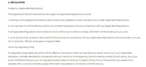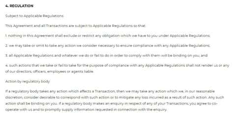 Информация о регулировании брокерской конторы FINQ прописана в разделе под номером 4 клиентского договора.