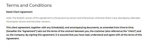 Единственная правовая информация, доступная клиенту на русском языке, это описанный выше нюанс. Все остальные регулирующие отношения брокер - трейдер нормы есть только на английском! Правила и Условия, Политика конфиденциальности и даже Предупреждение о рисках - все без перевода на русский язык! Вот главная страница.