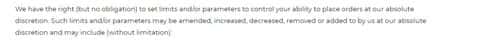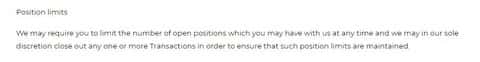 Совсем мило выглядит следующий пункт из публичного клиентского соглашения. Это ведь противоречит принципам биржевой торговли, не так ли? Для всех, а в первую очередь для учредителей околобиржевых кухонь, очевидно, что для того,чтобы добиться успеха в биржевой игре, надо оперативно реагировать на рыночные изменения,вовремя отдавая приказы на стоп или перекрытия. Кухонный же брокер может вас лишить этой возможности, основываясь просто на собственных желаниях. А точнее на нежелании предоставить вам возможность его обыграть.