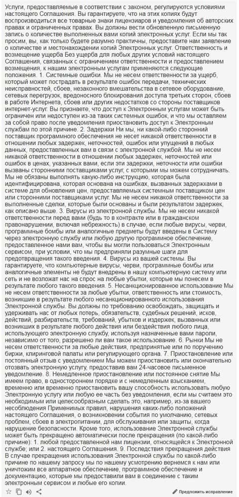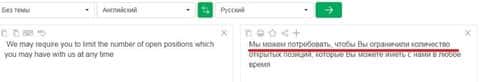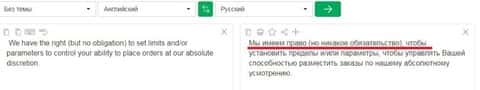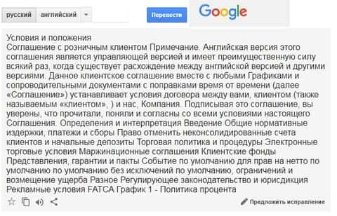 Причем, на английском текст не выглядит юридически грамотным. И излишне любопытному юному трейдеру, решившему сунуть нос туда при помощи гугл транслита, интернет-переводчик выдаст совсем неудобоваримый набор фраз.