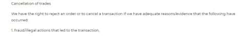 Как и большинство недобросовестных брокеров, FINQ прямо декларирует, что все сделки находятся под его полным контролем. И только он решает, засчитать ли удачную сделку трейдера или под надуманным предлогом отменить ее.
