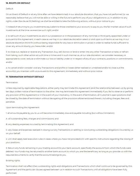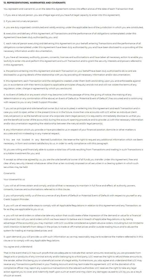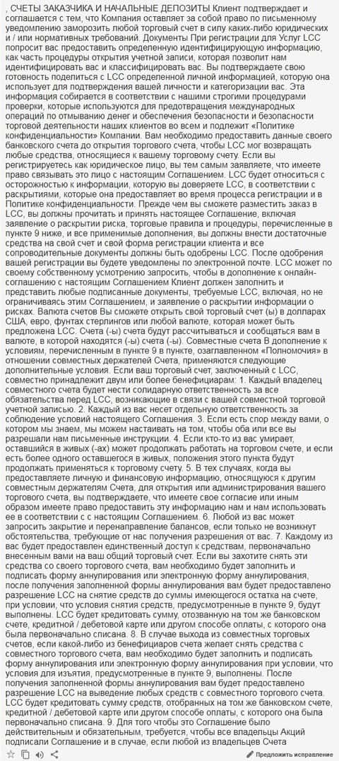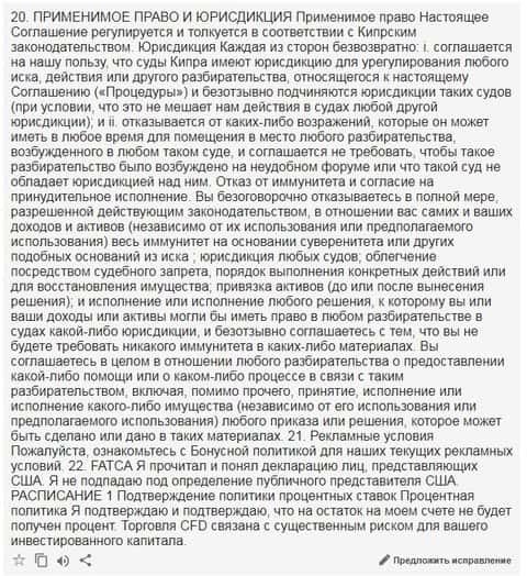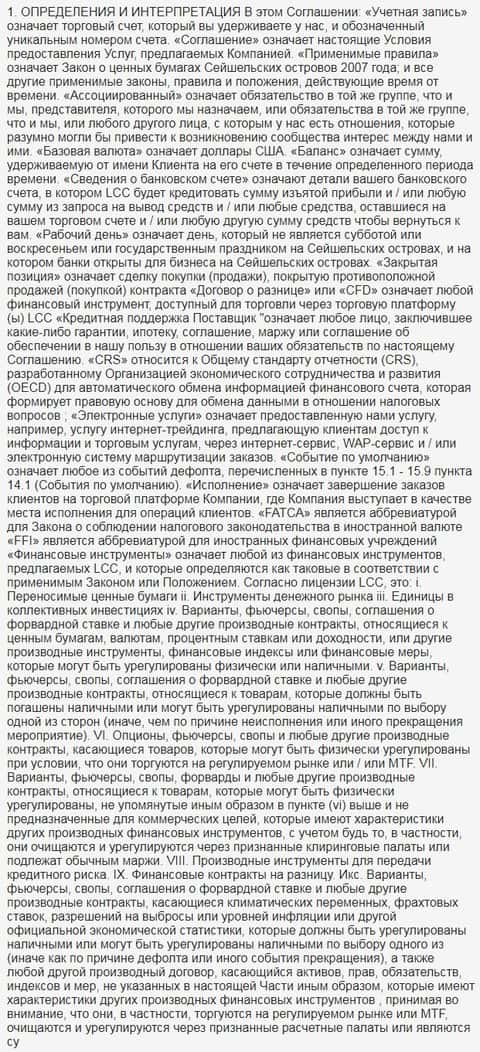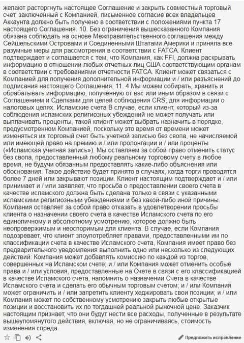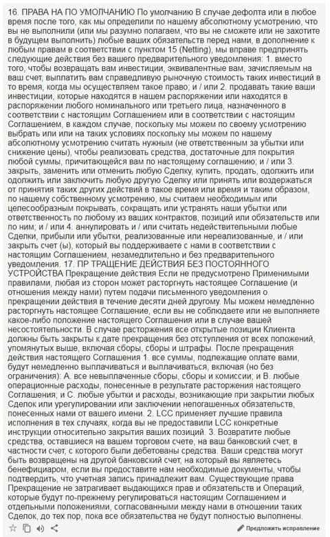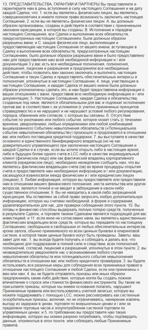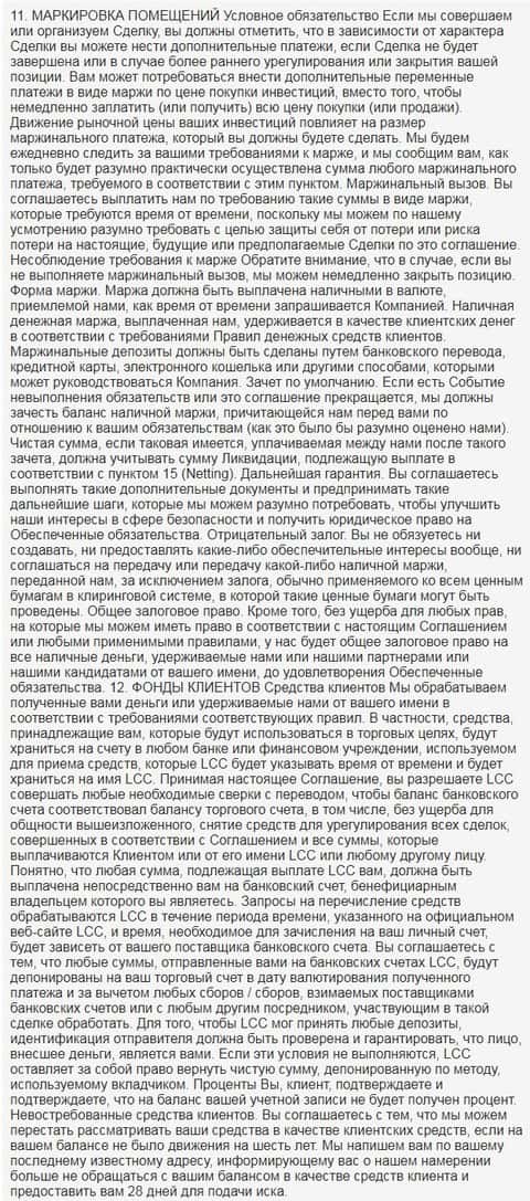 Ниже предлагается вашему вниманию скрин 18 раздела клиентского соглашения на языке оригинала.