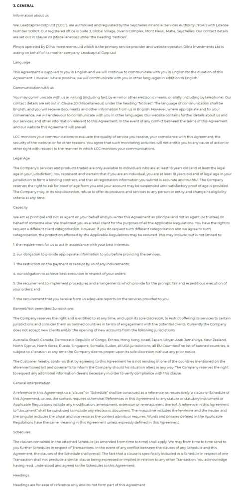 Далее читаем раздел под номером 14 соглашения между клиентами и брокерской организацией FINQ.