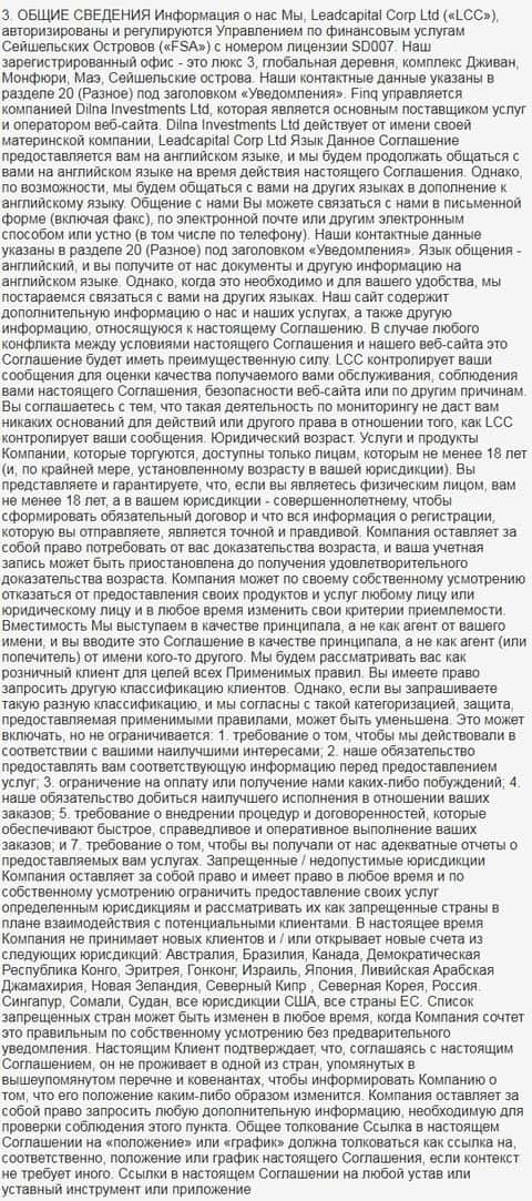 Далее предлагается к вашему ознакомлению клиентское соглашения шарашкиной конторы ФИН Кью в полном объеме.