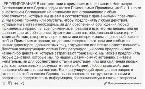 Ну и что, что данное положение скрыто в дебрях такого замечательного сайта, где все сулит невиданную прибыль. Причем прибыль сулят на доступном,понятном аудитории языке. А вот все сюрпризы, как оказывается позднее, скрыты в так называемых регуляторов-правовых документах на английском..