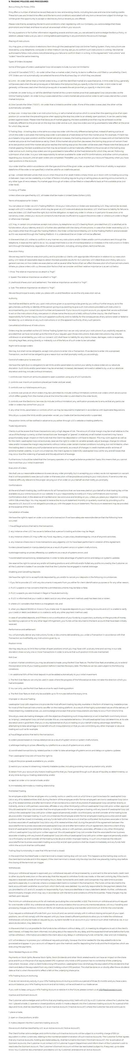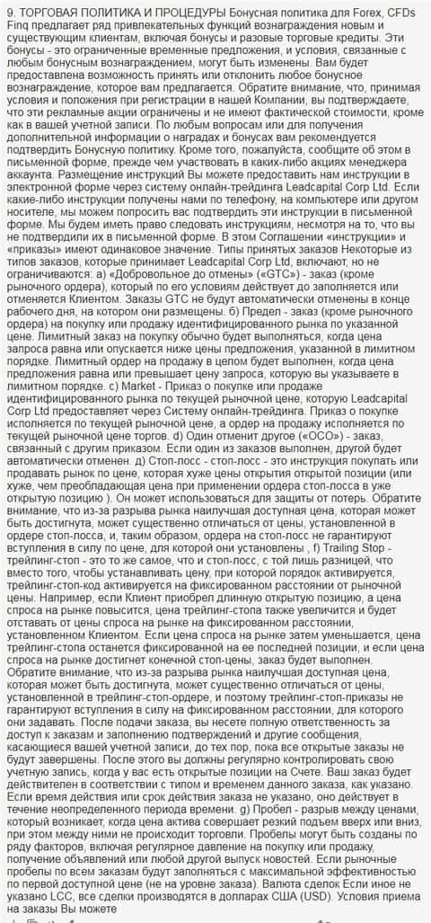 Ниже предоставлен Вашему вниманию раздел под номером 9 клиентского договора брокерской организации FINQ.