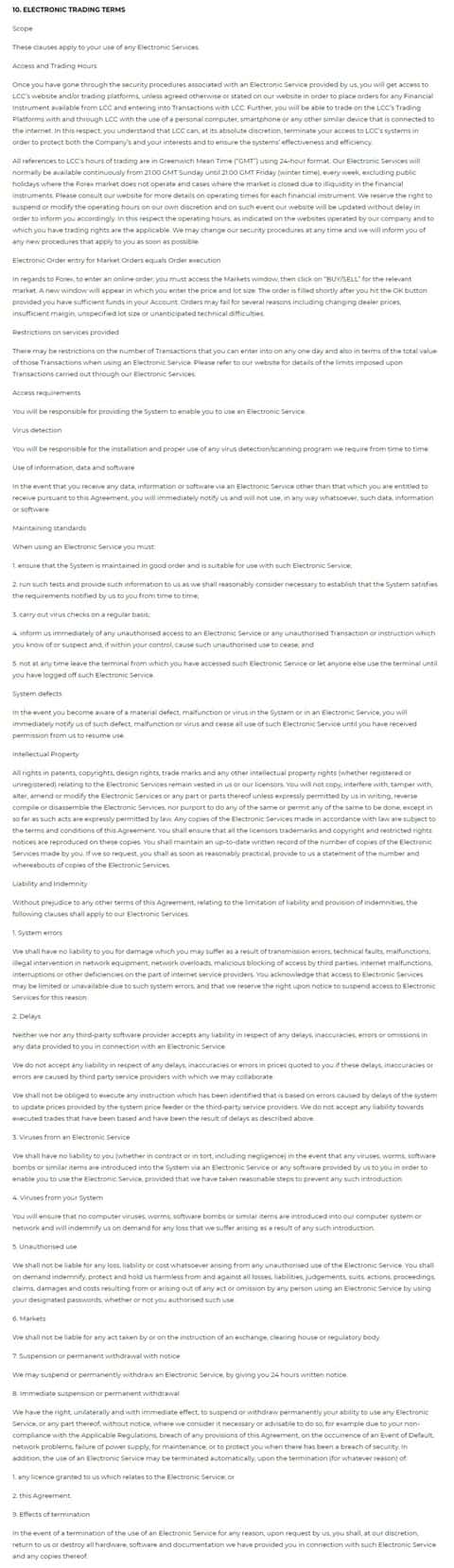 Условия электронной торговли в дилинговом центре ФИН Кью прописаны в нормах раздела 10 соглашения от ФИН Кью.