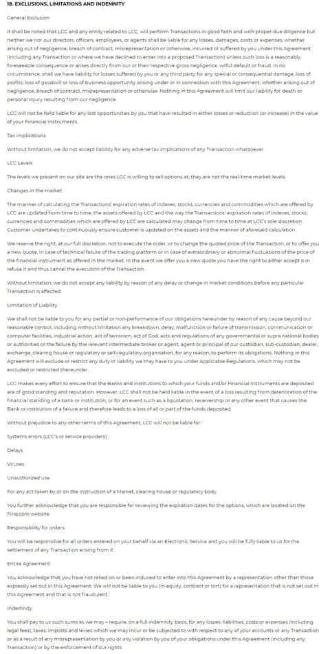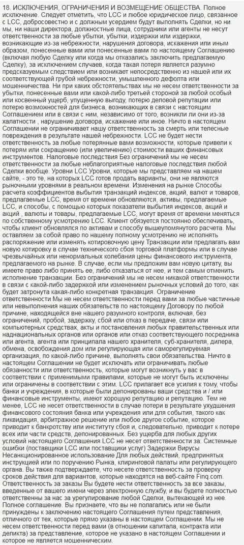 Дополнительные права шарлатанов в виде ДЦ FINQ описаны в разделах 16 и 17 клиентского договора сего интернет-лохотрона.