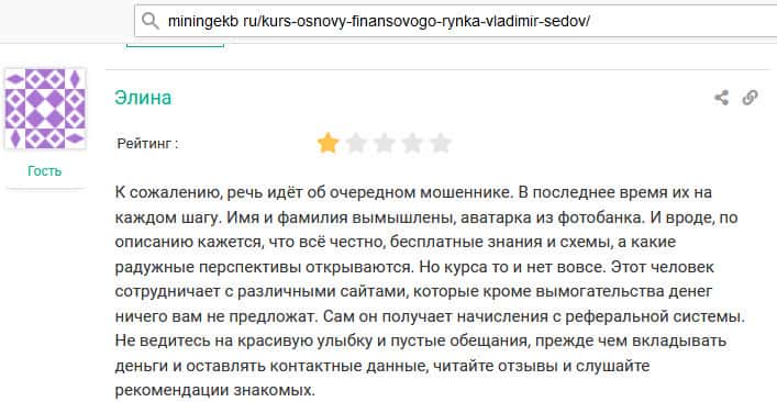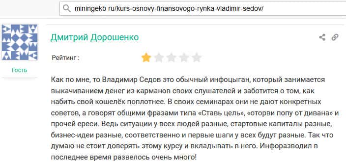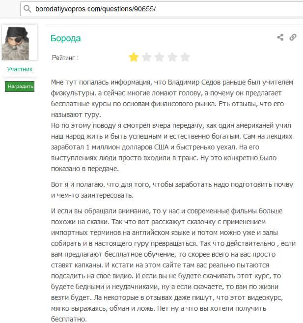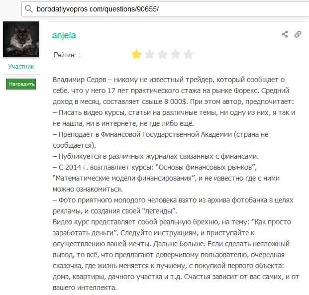 seoseed ru - сайт, где есть много отзывов пострадавших от советов Владимира Седова