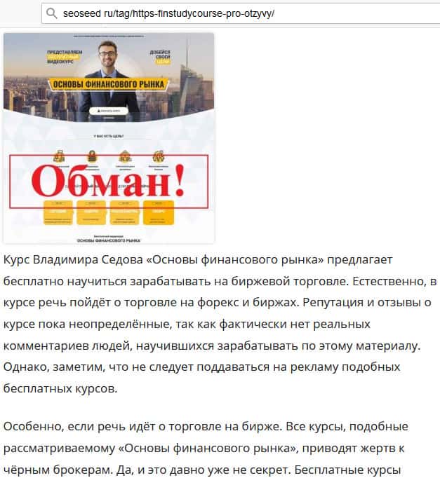 Что думает автор статьи о курсе Владимира Седова Фин Стади Курс?