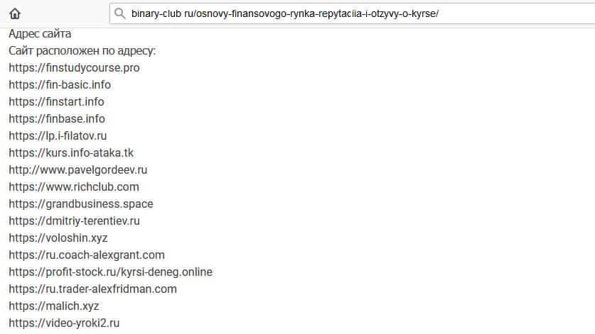Здесь ситуация точно такая же, как и выше, поэтому запомните адрес домена и обходите его 10 дорогой, потому что тут разводят на деньги. Автор курса FinStudyCourse Pro наверное уже сам запутался в своих творениях и не исключено, что он по ошибке мог удалить свой курс. Это реально смешно.