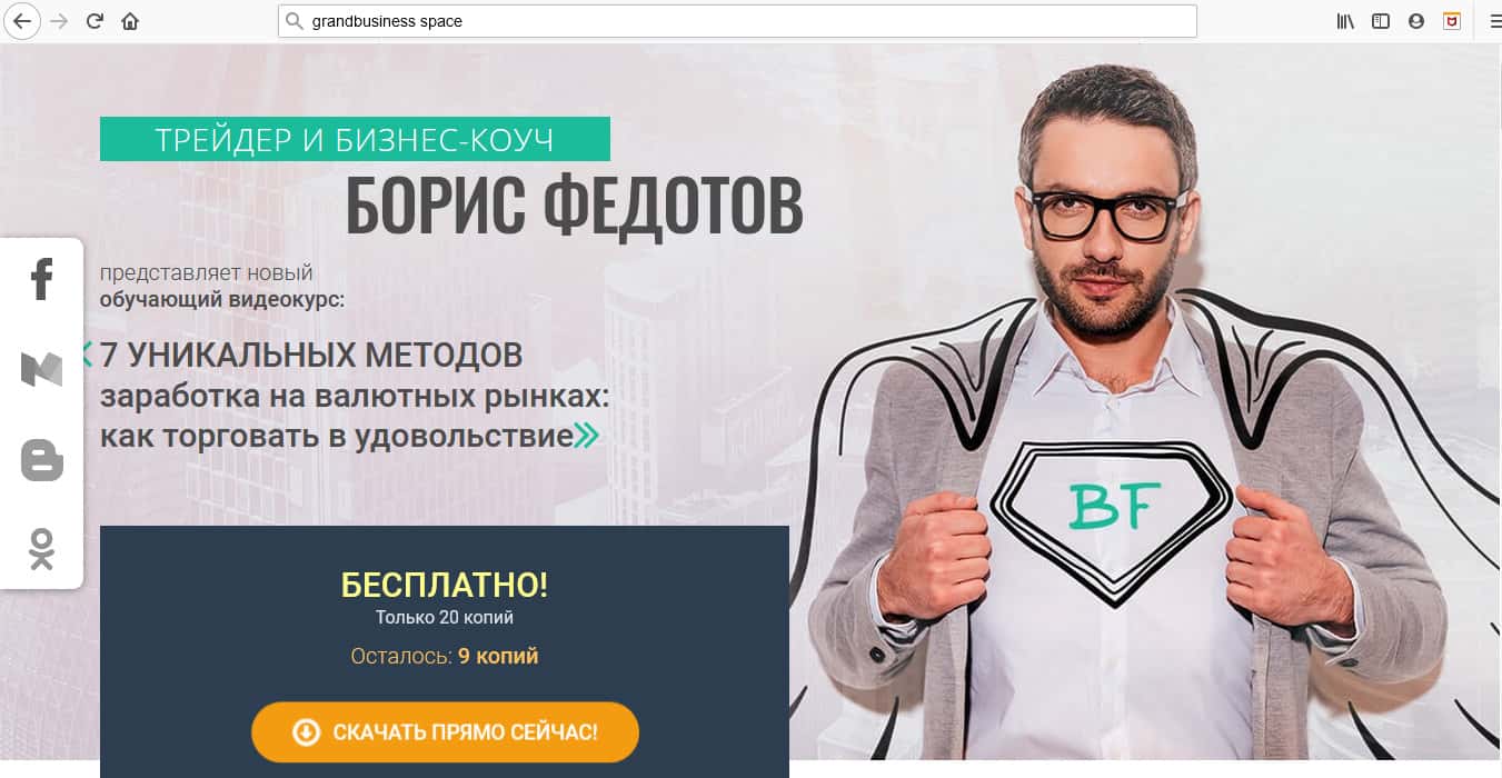 Насколько же создатель курса Фин Стади Курс многолик... Тут он Владимир Седов, а тут уже Борис Федотов. Хорошо, что хоть не Вася Пупкин, а то бы вообще очень тупо все это выглядело... В любом случае, не заметить такой дешевый развод просто нельзя. Под несколькими проектами скрывается один и тот же жулик.