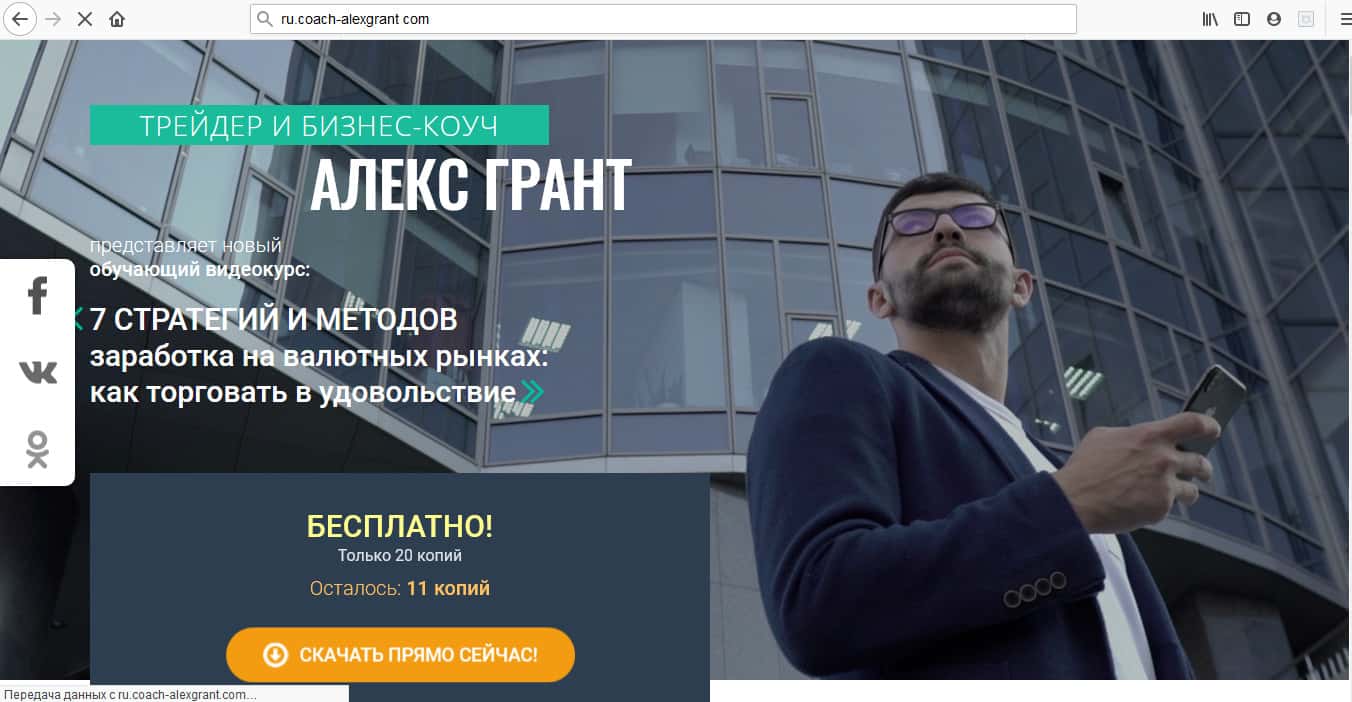 Только успевай следить за тем, какое очередное имя автор курса FinStudyCourse Pro выдумает на этот раз. На этот раз он Алекс Грант - бизнес-коуч, который предлагает курс "7 стратегий и методов заработка на валютных рынках: как торговать в удовольствие". Смешно звучит. С таким курсом вы только потеряете свои деньги.
