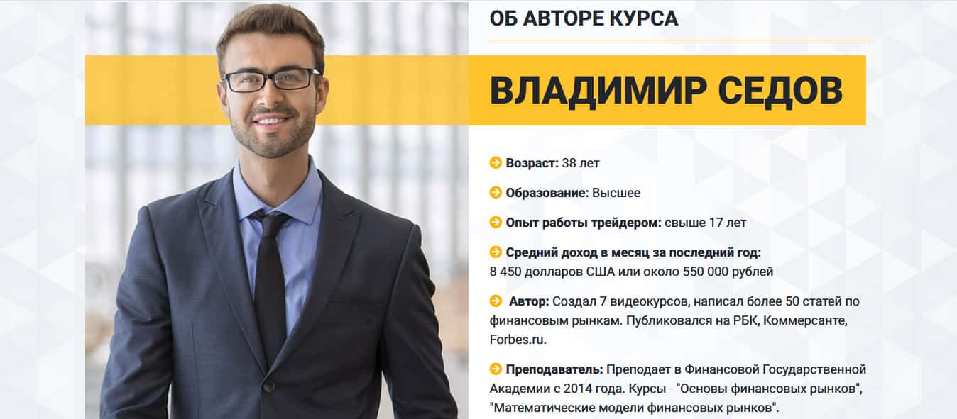 Что известно об авторе курса Фин Стади Курс Владимире Седове?