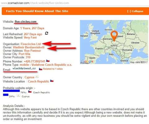Сайт аферистов Файф Серклз зарегистрирован в Чехии