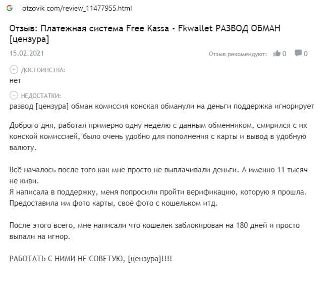 Мошенники FKWallet работают в одной связке с обменником Free-Kassa, который также разводит пользователей всемирной паутины не деньги.
