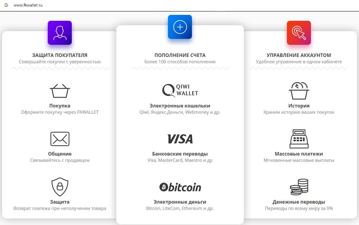 Услуги предоставляемые на онлайн-сервисе жуликов FKWallet
