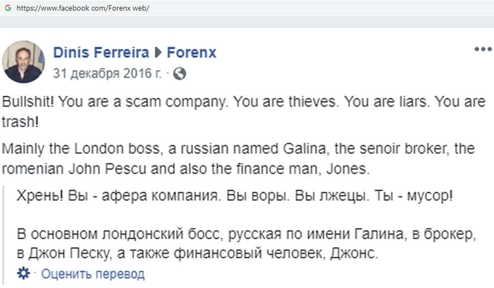 Несмотря на то, что скам-контора ForenX прекратила свое существование, аккаунт жуликов в Фейсбук продолжает функционировать. Поймать на эту страницу никого не удастся, так как у нее низкий рейтинг доверия. Но, опять-таки, лохотронщикам достаточно просто поменять название и продолжить обворовывать трейдеров-новичков.