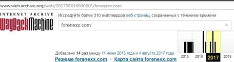 Ссылаясь на данные специализированного интернет-сервиса web archive org, где представлена информация касающаяся истории всех имеющихся в мире на сегодняшний день сайтов, официальный веб-ресурс брокерской кухни Форенекс перестал функционировать 4 августа 2017 года.