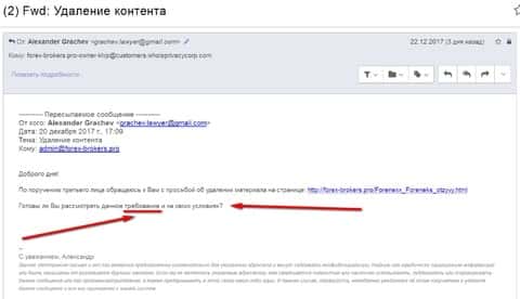 Поводом для уточнения информации стало "требование" от некоего Александра Грачева, которого попросили "третьи лица" попытаться удалить информацию об ушедшем брокере. И все бы хорошо, да только требовать нужно где-то в другом месте.