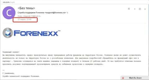Поэтому все заявления службы поддержки конторы Forenexx являются очередной ложью со стороны аферистов, ведь для обслуживания клиентов на территории Российской Федерации, использовался веб-ресурс forenexx ru, но как мы видим ДЦ исчез по всем направлениям своей бизнес-деятельности, что еще раз доказывает принадлежность брокера Форенекс к кухням Forex, кинувших клиентов с помощью самоликвидации.